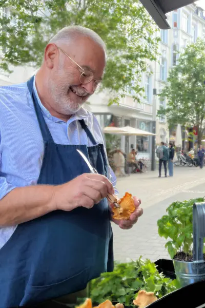 Nach langer und erfolgreicher Laufbahn im Vertrieb der Marke de Buyer, mit Verantwortung für den Aufbau eines Händlernetzes für Deutschland und Errichtung eines de Buyer Markenshops im KaDeWe in Berlin, war es Zeit für etwas Neues! Die Idee zum Sündikat ist bei einem Kaffee im Kessel’s Espresso-Studio, inspiriert von der wunderschönen Tür der Hausnummer 53, entstanden. 2018 stand der Laden leer und die Phantasie von Gerd Raffelberg hatte freie Bahn. Nur drei Monate später wurde das Sündikat eröffnet.